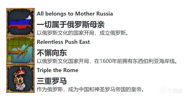 成立俄罗斯没有难度,莫斯科体量碾压周围国家,与游牧对战时注意避免在平地即可。不懈向东对于新手时间稍微紧,需要尽快成立俄罗斯拿到西伯利亚拓荒区理念。三重罗马一般用瓦剌来做,当然用俄罗斯做最正统,需要对转教、转文化、神罗、天命等机制都有了解。