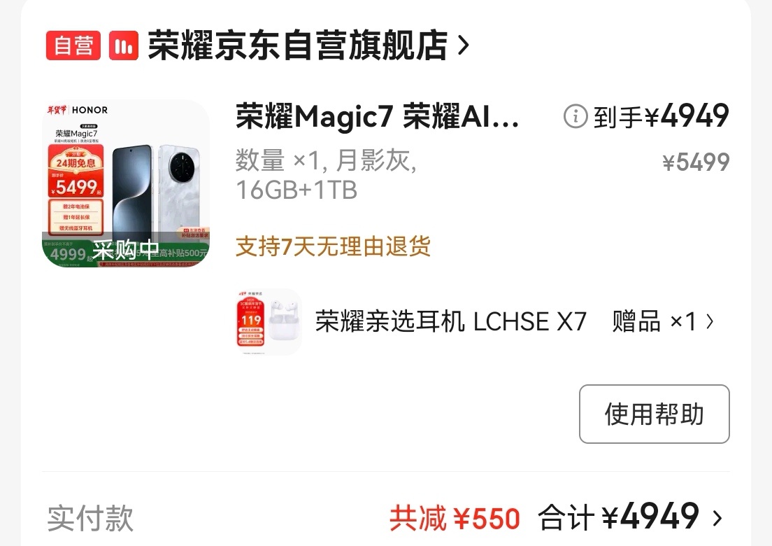 最后以4449价格成功拿下荣耀magic7,1t版本!