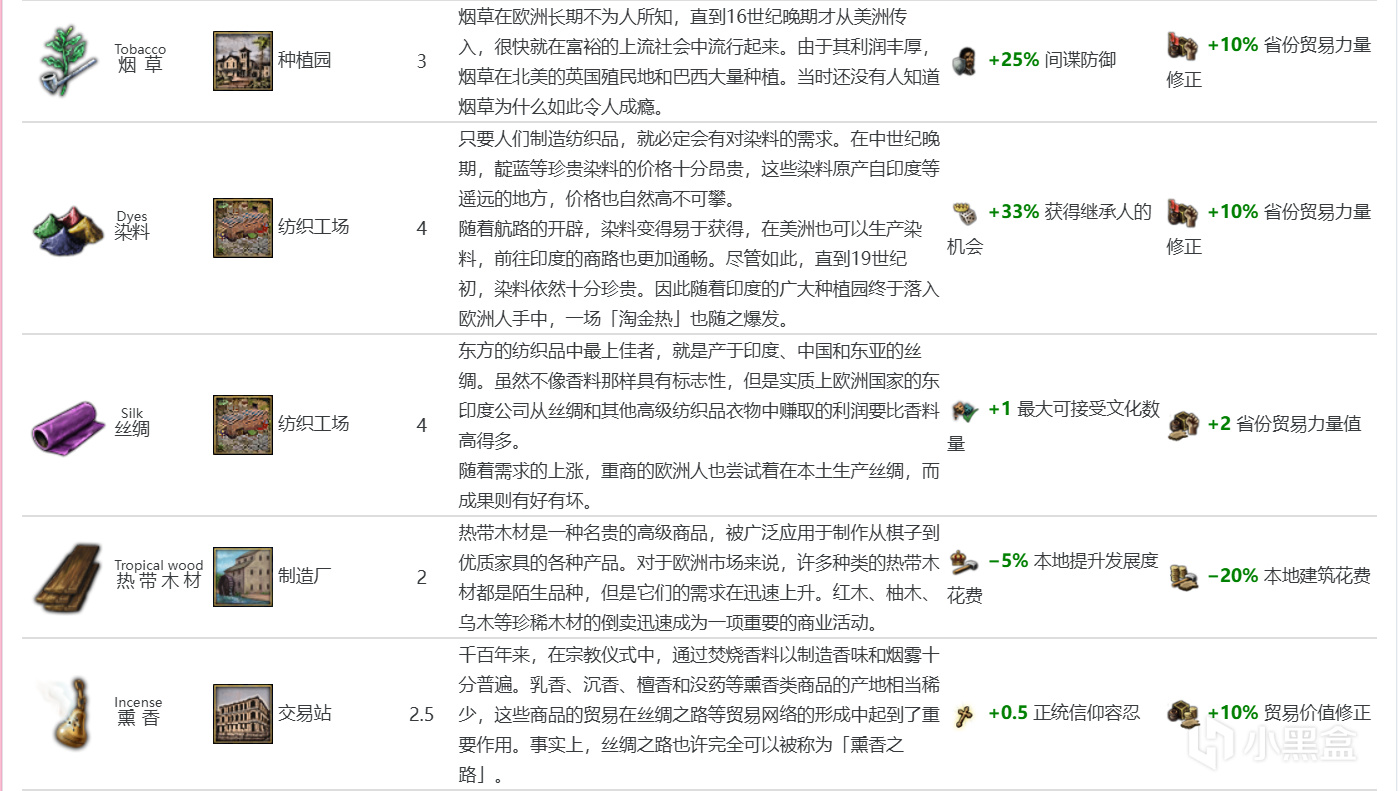 布料(基礎價格3):省份本地-10%提升發展度花費,布料省份也多農田,種種田效果不錯。1544年/1674年漲價至3.6~4.05,後期達到4點價格不錯就是太晚;