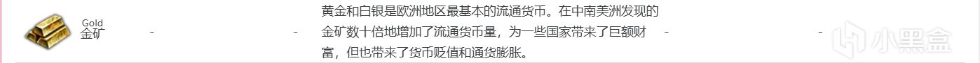 金礦是很多玩家非常喜歡的一種產物,在遊戲前期提供數量極爲可觀的收入,其好用程度是許多其他產物難以比擬的。然而,金礦省份存在着一些明顯的弊端,比如說它並不提供貿易價值。與其他的產物相比,從長遠發展的潛力方面來看,金礦是有所不足的。而且金礦還存在着通脹增長以及塌方這樣的負收益。鑑於這些情況,並不建議玩家將金礦當作經濟支柱來發展。
