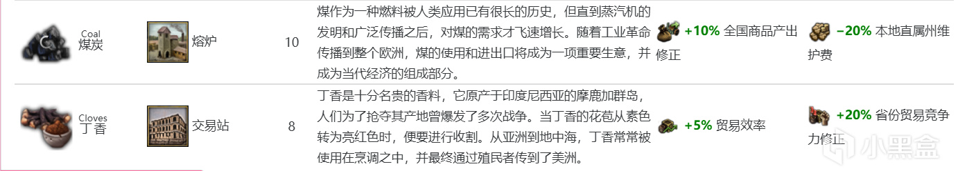 煤炭(基礎價格10):只有在省份接納啓蒙主義思潮時(注意是省份),商品纔會變成煤炭。潛在的煤炭生產省份是完全固定的,不會憑空增加或者減少。煤炭允許省份擁有者建造工廠建築-熔爐,每一座熔爐建築都給予該國家 +5% 全局商品產出修正。數據大爆炸!