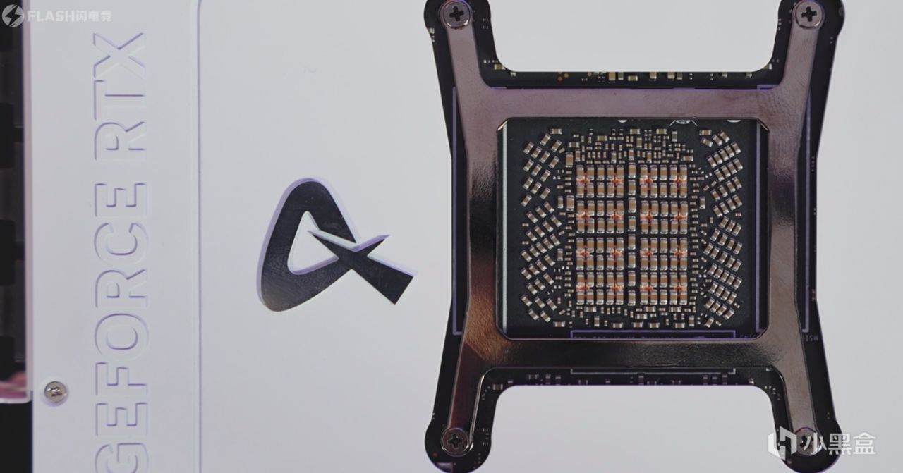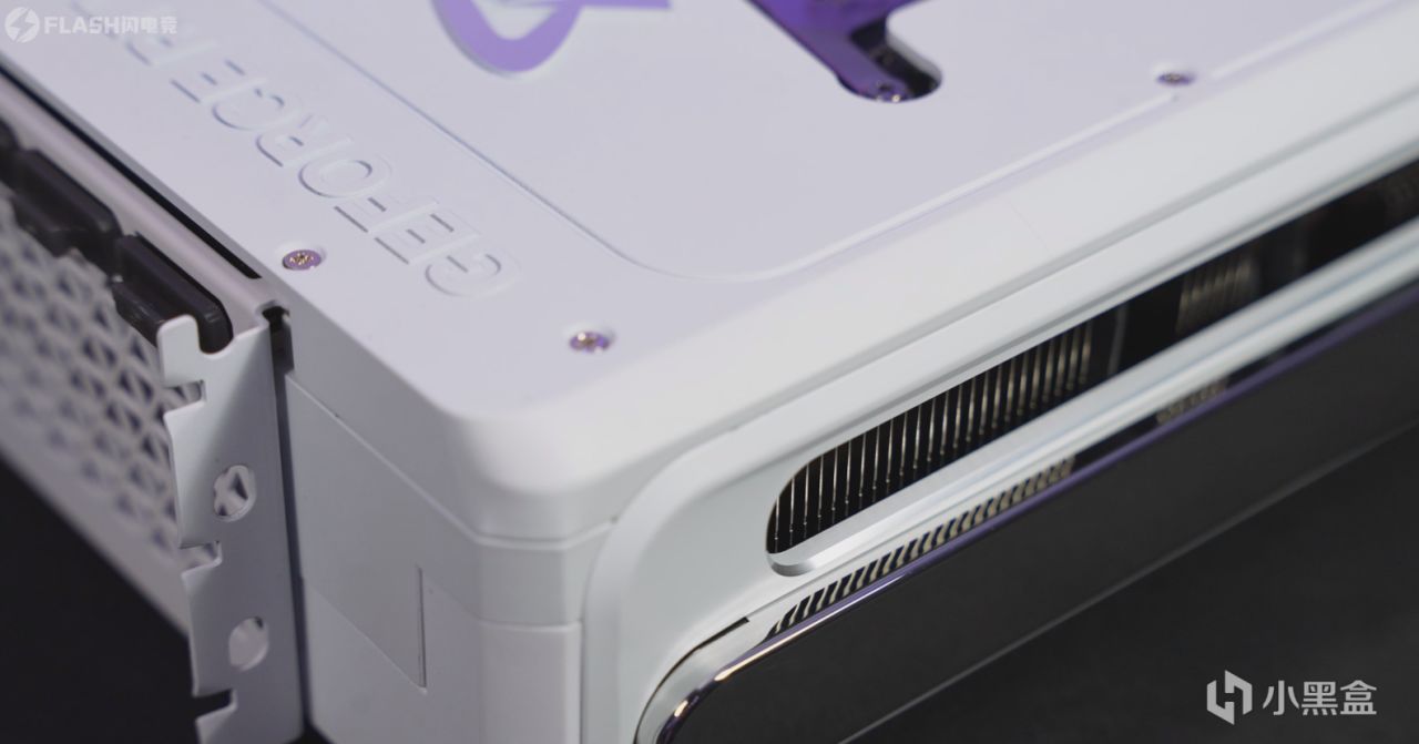 再看背板的左侧,是一个银色的电竞叛客LOGO。尾部是GEFORCE RTX 字样,这种排列方式,让我想起了30系的TUF,我还是比较喜欢的。