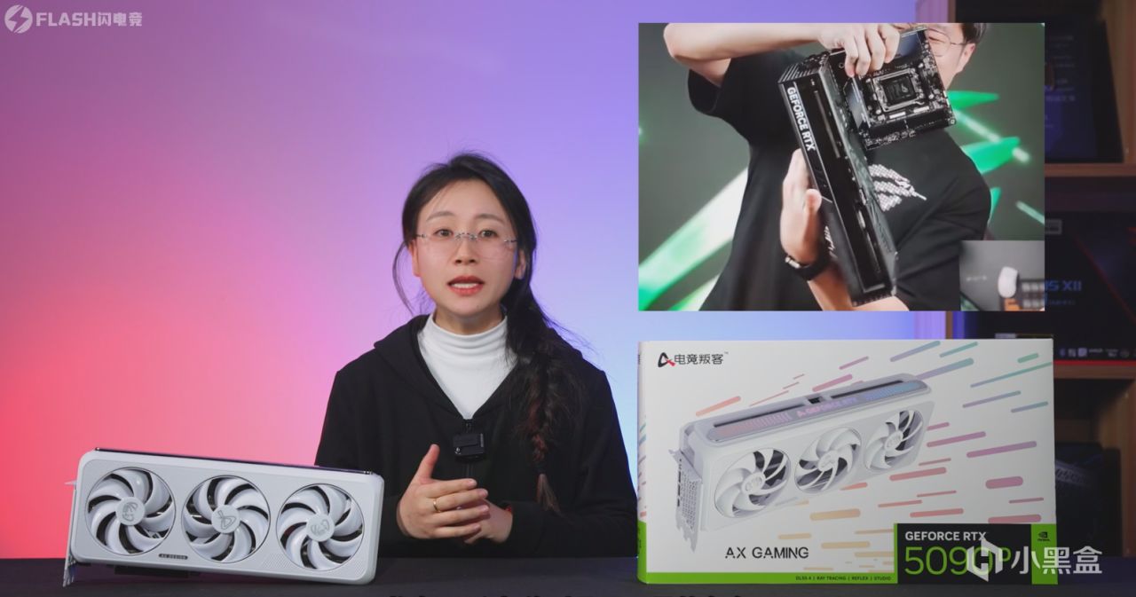 但是这次电竞叛客不仅使用了一体式巨型散热器,还给了7x8+3x10的逆天热管配置,目前位置我所了解到的所有50系显卡中,还没有这么离谱的,真的很期待NV把驱动给我们之后的烤机表现,到底会有多夸张。