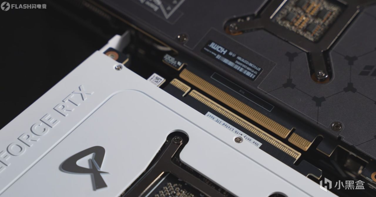 再给大家看看50系支持PCIE5.0的金手指,跟PCIE4.0还是不一样的,至少尾部那一根看起来像断了的金手指,是没有了。
