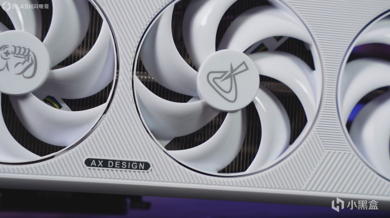 三颗风扇直径为10cm,中间风扇转向与其他两颗不同,叶片上面也有小细节,一半磨砂一半光滑,不愧是AX DESIGN。
