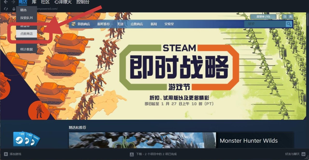 第一步:打開加速器加速steam,先點擊商店,再點擊點卷商店。