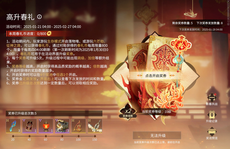 *道具【春礼币】可用于升级【高升春礼】活动奖券