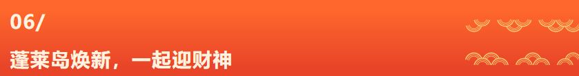 此外,每消费300金块,将获得“福贴”*1,前往蓬莱岛财神处交互,直接召唤财神降临,为蓬莱岛的所有英雄送上你独家冠名的金福袋!