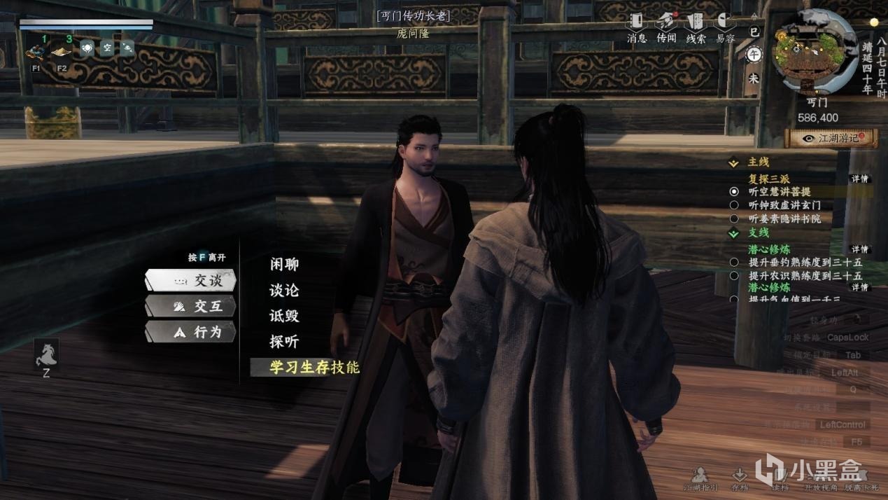 加入后可在传功长老处学习生存技能。(乞讨、探听情报...)