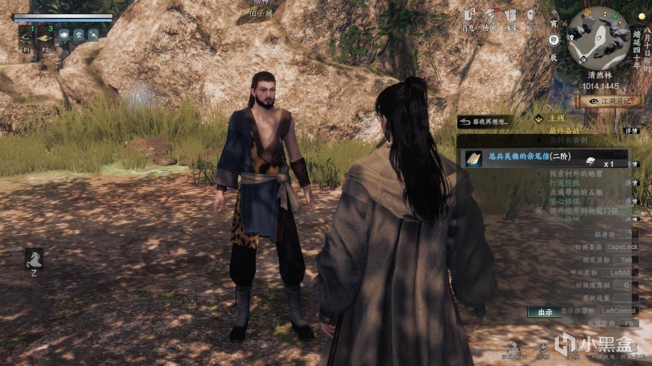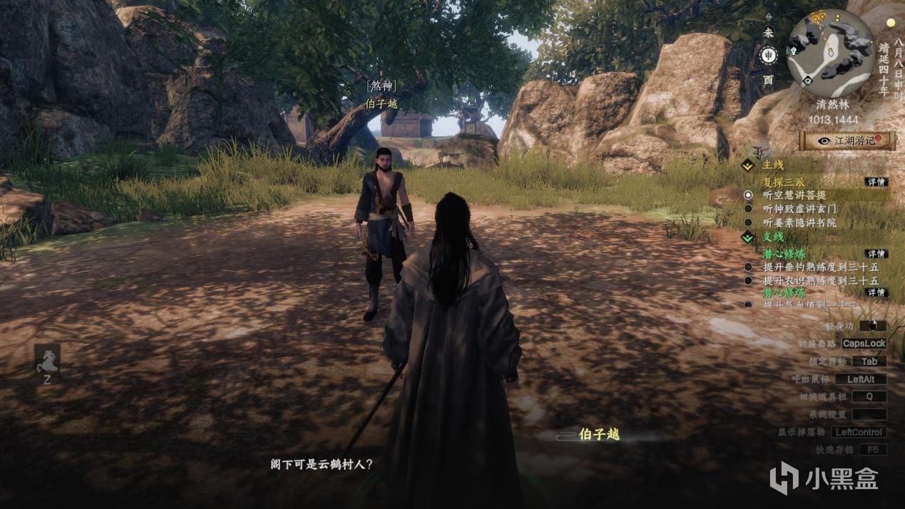 下马后往南走到图中这个位置找到伯子越,对话后会触发寻找秘籍的支线对话。