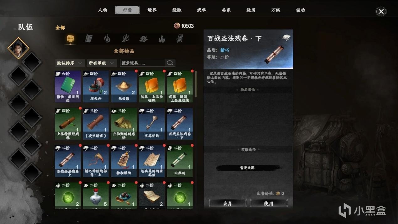 然后接着我们去找一个也是非常厉害的功法——《百战圣功》,因为这玩意可以提升气血、刚属性、当我们有一攻一守两本秘籍的时候就算一个有经济的上单——又肉又有输出。