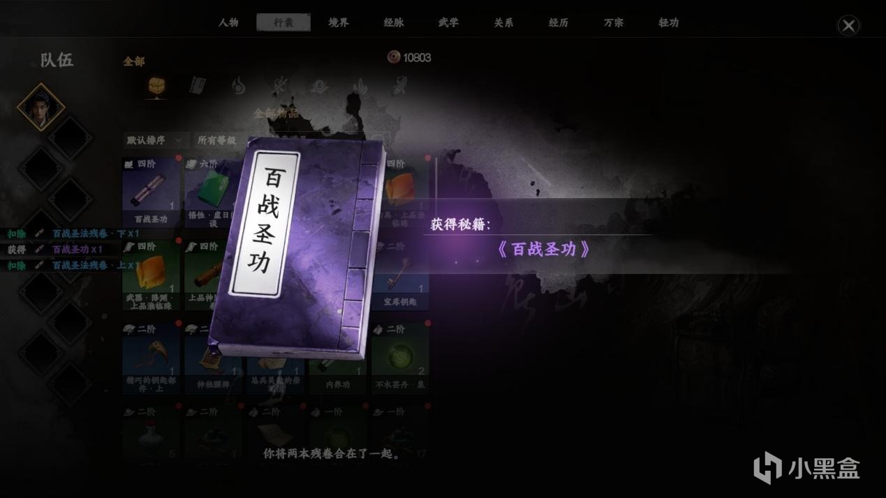 在背包里合成(点击使用)一下上下两卷,即可获得完整版的《百战圣功》。