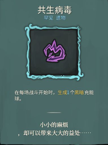 冰霜充能球與BOSS級遺物“凍結核心”有關,更傾向於【魔法】。閃電充能球處於【科技】和【魔法】的中間,兩邊的元素都帶點。黑暗充能球最神祕,目前不知道其背景故事和遊戲設定中的高爆發傷害有何聯繫,與之相關的遺物“共生病毒”的說明也毫無頭緒可言,原文爲:“小小的麻煩 ,卻可以帶來大大的益處……”。