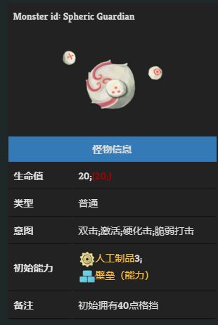 圓球行者,能夠自我強化,施加灼燒狀態,其藍色核心明顯更加強大,由於並不自帶【人工製品】BUFF,可能更加偏向活物,但明顯不如兩位BOSS級別存在。