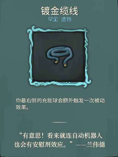 【故障機器人】存在自我意識的證據還有專屬遺物“鍍金纜線”和“情感芯片”,“鍍金纜線”的說明爲:“‘有意思!看來就連自動機器人也會有安慰劑效應。’——蘭偉德”,意思指的是鍍金理應不影響纜線性能,有鍍金的纜線和沒有鍍金的纜線沒有性能上的區別,對於【人工製品】而言沒有鍍金的必要,但實際情況中還是出現了“鍍金纜線”這一遺物,可能暗示【故障機器人】出現了人的意識和情感。“情感芯片”就是直接明示了,“<3”是一個倒過來的心形符號,在外國互聯網的交流中比較常用,表示愛心、喜歡等情感,該遺物可能是【故障機器人】情感和意識的來源。但按照現實中的科技來說,一個芯片做不到承載複雜的自我意識和情感,不過殺戮尖塔世界觀明顯能夠做到。卡牌“創造性ai”和“機器學習”都暗示了【故障機器人】強大的學習和自我完善能力,也算是其自我意識能夠不斷完善的技術支持。