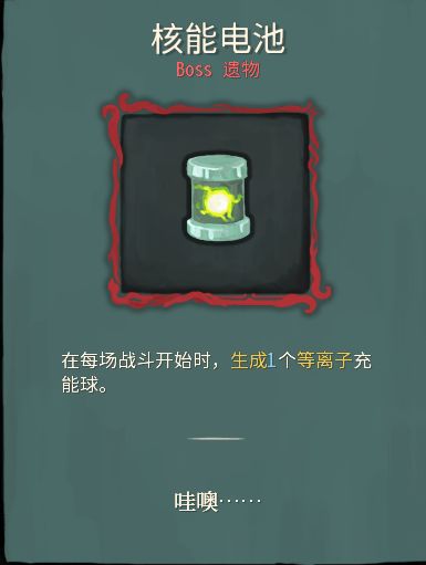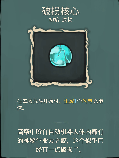 等離子充能球與BOSS級遺物“核能電池”有關,更傾向於【科技】。在卡面“聚變”裏,其餘三個球合成一個等離子充能球。等離子充能球可以爲【故障機器人】提供能量,再加上“核能電池”BOSS級遺物,可能暗示【故障機器人】由核能驅動。“破損核心”的遺物說明告訴我們這些【人工製品】都用着和【故障機器人】相似的核心,假設它們均爲核能供應,那麼核心裏的巨量能量應該可以支撐這些【人工製品】度過【荒疫】後的漫長歲月而不損壞或關機,畢竟距離【荒疫】發生到現在,已經出現知識斷層現象了,【故障機器人】居然還能正常開機。並且,我們在遊戲中就沒有遇到壞掉或者關閉的【人工製品】。即便第二層“城市”中的文明倒退爲奴隸制社會,沒有人懂得保養第二層的BOSS“銅製機械人偶”,過了很久依然能使用大量耗能的“超能射線”,這些【人工製品】的科技水平可見一斑。
