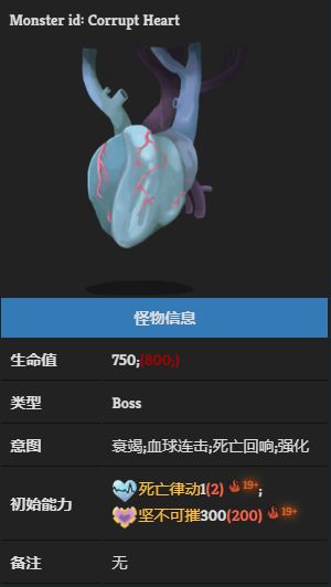 【腐化之心】,與其他【人工製品】的不同點在於其強大的活性,離鮮活的人體器官最爲接近。且在遊戲中可以自主獲得【人工製品】BUFF和力量BUFF,介於活物和人造物之間的特殊存在,更接近活物。
