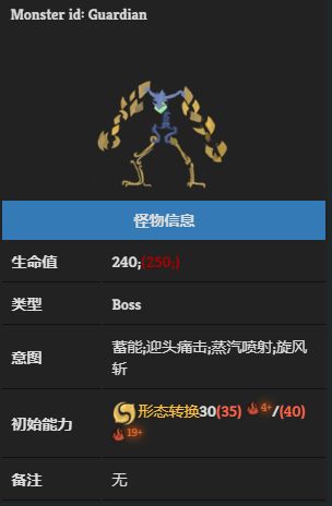 守護者,具有發音功能和低級智慧,能夠變換形態進行作戰,有反傷鱗片設計。沒有自帶【人工製品】BUFF,可能偏向活物。