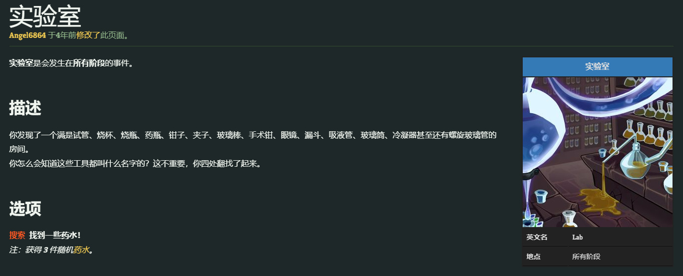 【先祖之民】煉藥技術登峯造極,代表事件爲“藍衣女子”“實驗室”“藥販子”,一個是買藥水,一個是直接獲得藥水,一個是拿你做實驗。【先祖之民】製造藥水已經形成了“實驗室”規模,事件原話是:“你發現了一個滿是試管、燒杯、燒瓶、藥瓶、鉗子、夾子、玻璃棒、手術鉗、眼鏡、漏斗、吸液管、玻璃筒、冷凝器甚至還有螺旋玻璃管的房間。”簡直不科學,這個世界有生物和化學嗎?可能還真有,【故障機器人】的“遺傳算法”卡牌可能暗示【先古之民】已經瞭解了DNA的結構並用於計算機的算法……而且遊戲裏的藥水設定都已經遠遠超過了“水”這一物質了,舉幾個有代表性的,“狡詐藥水”生成小刀,“萬靈藥水”消耗“詛咒”和“狀態”,先古藥水獲得“人工製品”效果(算是直接證明了【人工製品】是【先古之民】造的,如果有空的話我可能會對【藥水】詞條進行研究)。除此以外,【蘭偉德】直接找你要藥水喝,藍衣女子賣你藥水,都可以證明藥水並不是什麼十分珍稀寶貴的東西,已經可以商業化了。“藥販子”事件中,三個選項分別是“來點猛藥”“當實驗對象”“喝下突變劑”,都是有關藥水的內容,而且選擇“當實驗對象”後出現了這樣一段話:“ 男人給你注射了三管不知什麼液體,然後他掏出了一本筆記本。你感覺自己有點兒飄飄忽忽,他則飛快地記起了筆記。”這明顯是藥品研發觀察實驗對象臨牀反應並進行記錄。鑑於“男人”超高的學術素養,我暫且認爲他是殘留的【先古之民】。