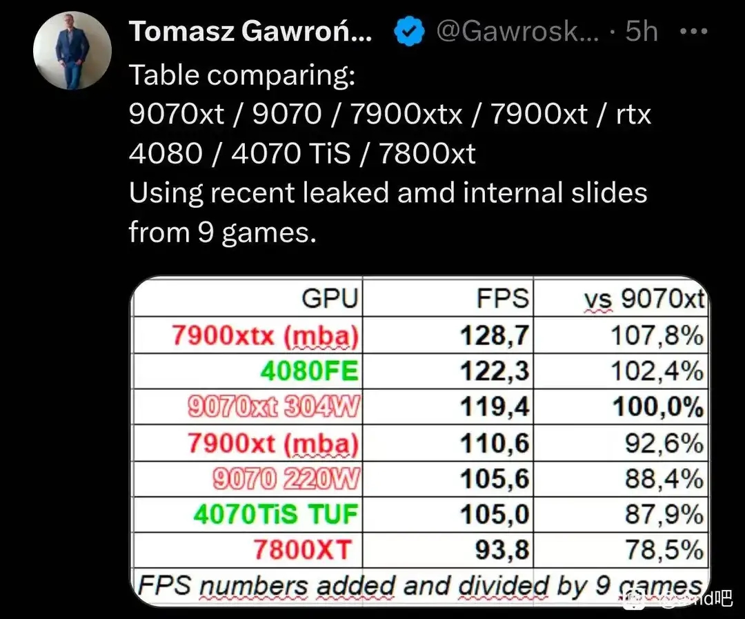 那性能這麼牛X,爲啥標題這麼寫呢?主要是價格,據爆料,9070XT原本是打算4000以內,但是看50系提升這麼小,然後就動了點歪心思,說之前透露的價格全是謠言,實際價格暫不發佈,這意思就很明顯了,原本以爲549美元的5070強的一批,只敢499,結果對手是個小弱雞,這價格就得再斟酌斟酌了嘛。目前傳聞價格肯定是4000以上了,至於會不會4500以上那就真不知道了。