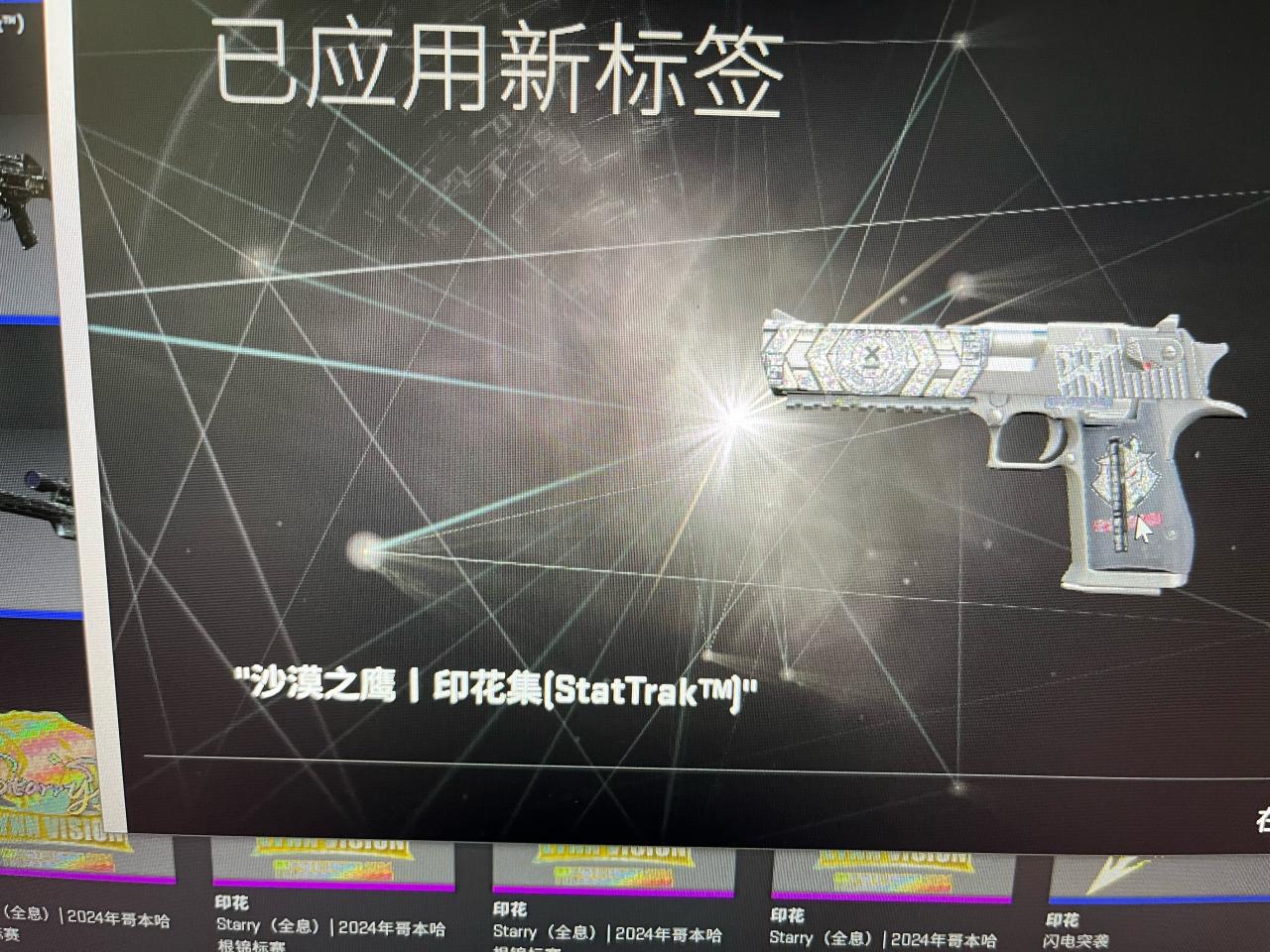 而且成本很低,5個印花加起來6r以內外加改名卡成本總共16r,少喝一杯奶茶就有一把永久的“印花集”(StatTrakᵀᴹ)沙鷹了,而且是無價之寶,原皮無法發起報價。