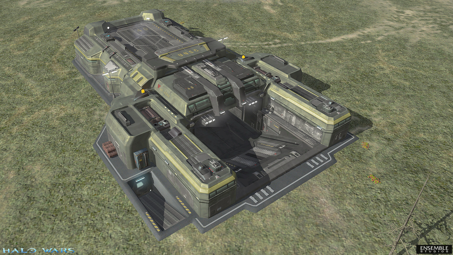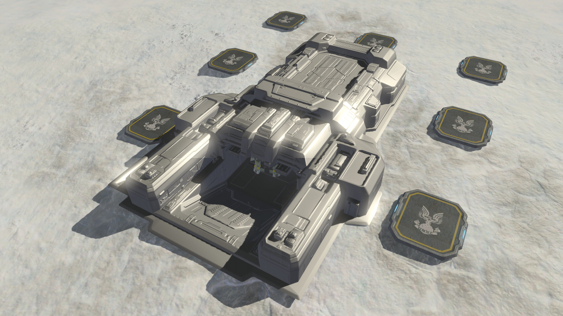 基地装置本身是由聚合混凝土制成的旧殖民地启动装置的一种变体,由小型氢核反应堆提供能源。迅速建立立足点是殖民地反叛行动的关键,因此,整个基地可以通过D20苍鹭号或D81兀鹰号等大型运输机直接投放到地面,使其落地立即投入使用。这种快速且便携的部署能力在与星盟的持续对抗中被证明是极其有效的,并且常被认为是UNSC的关键开局优势。