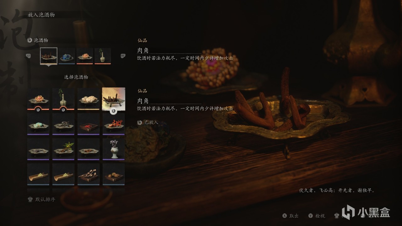 说明:饮酒时若法力耗尽,一定时间内少许增加攻击
