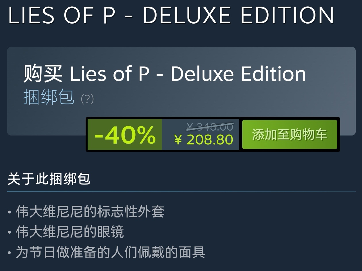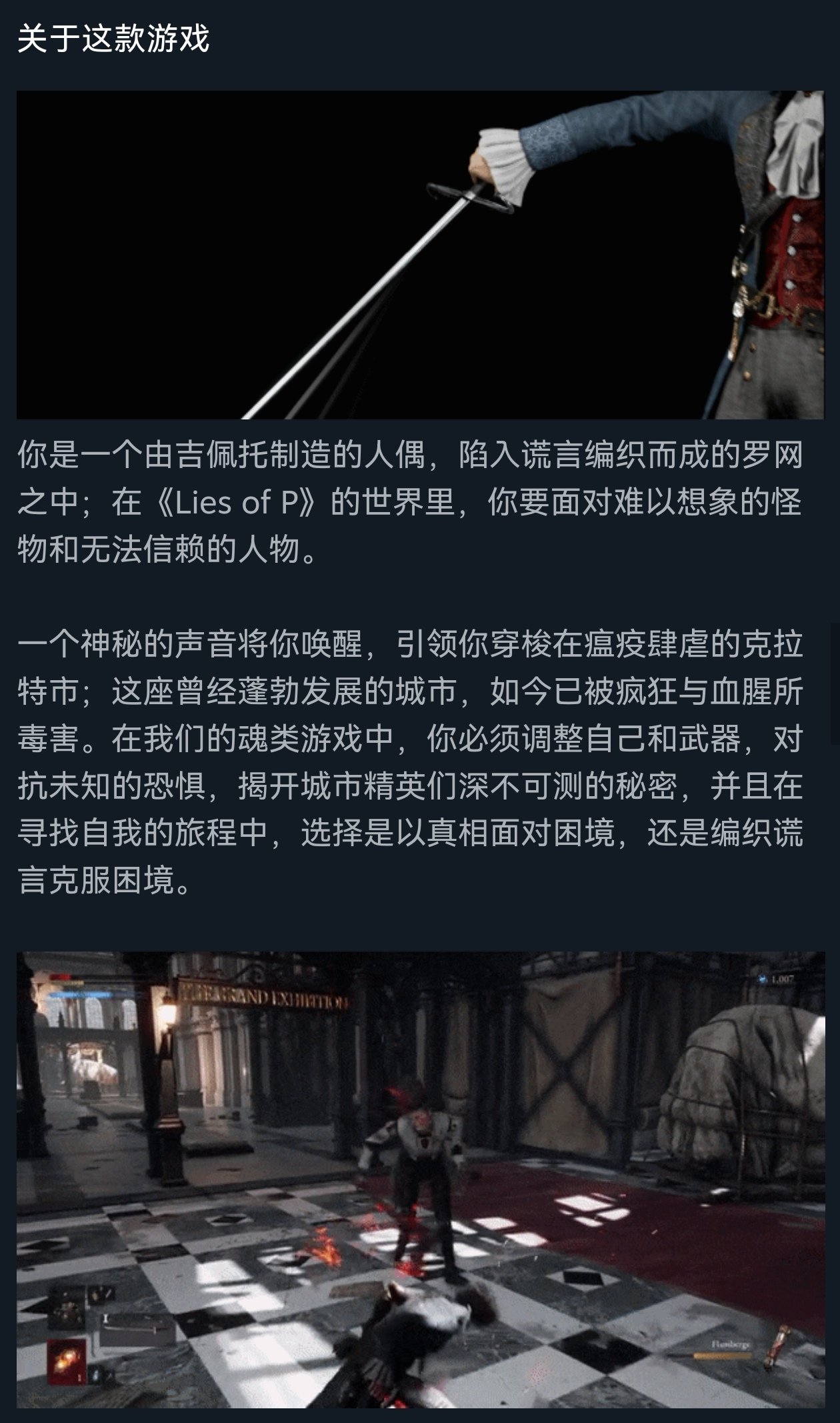 大家好,就在今天,类魂尖子生《匹诺曹的谎言》再次迎来了史低价格,游戏是类魂游戏中的佼佼者,拥有不俗的美术的素质以及顶级的音乐与优化。