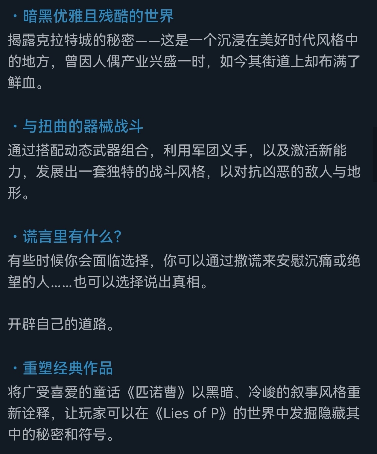 我前段时间写的《匹诺曹的谎言》游戏的简评: