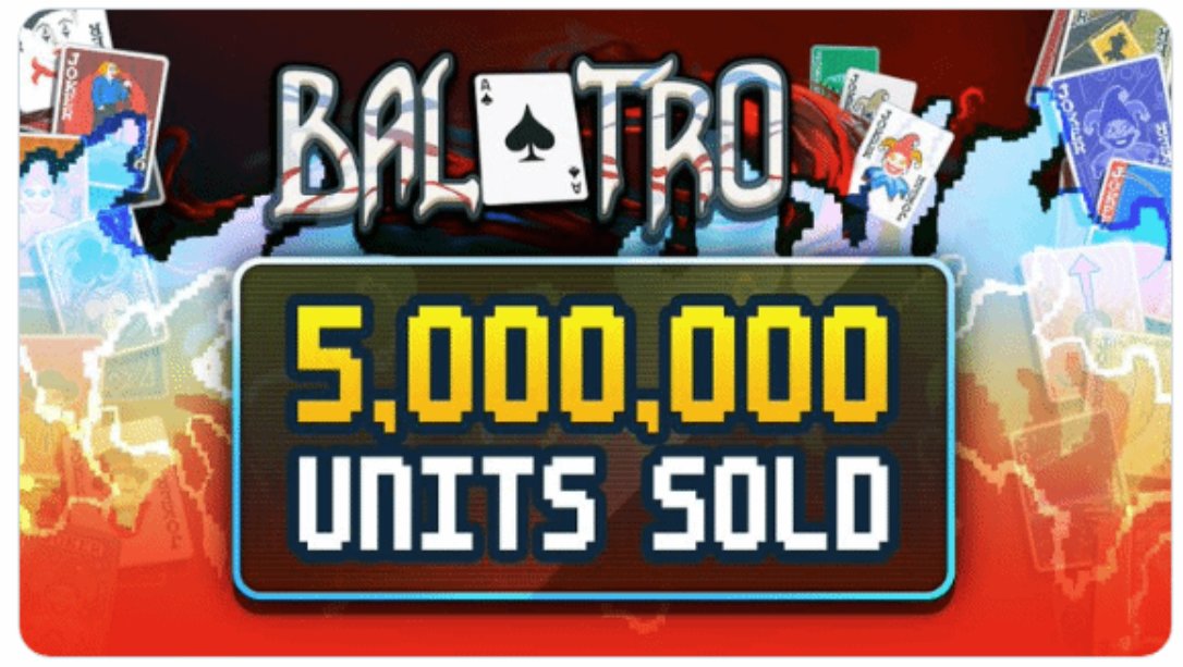 • 据媒体报道,Localthunk宣布,独立游戏《小丑牌》的全球销量已经突破500万,其发推表示:“过去几周简直太疯狂了,感谢所有在TGA之后购买《小丑牌》的玩家,希望你们玩得开心!如果这是你第一次接触独立游戏,希望你能养成这样的习惯,外面还有很多精彩的独立游戏等着你去发现!”