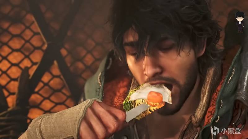 除了獵人自備的貓飯外,喫喝的設定也在此次新作中與當地風土人情關聯了起來。用手撕開的餡餅還原的質感很棒,與其他食材的組合搭配食用,在早年間的《怪物獵人》系列遊戲中幾乎是看不到的