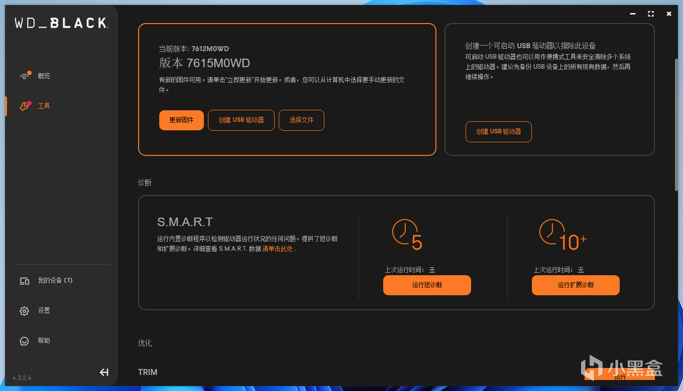 西数还有专门的硬盘管理软件——Western Digital Dashboard