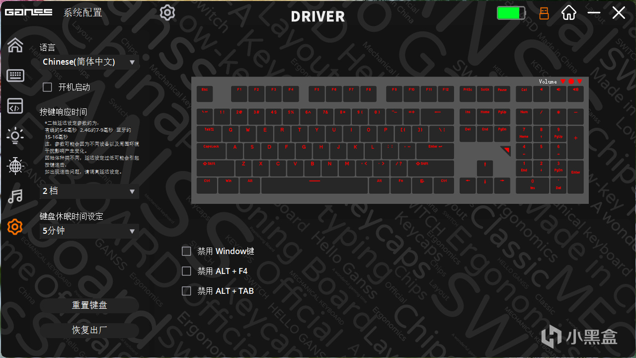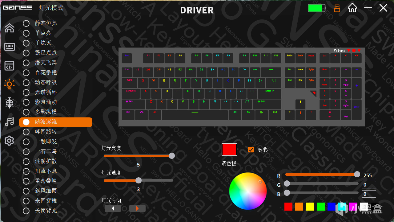 GANSS 3108 Pro還附帶了能定製更詳細功能的驅動。在這裏,我們可以調節安排功能、變換燈光效果,甚至可以讓鍵盤的燈光和着音樂而動。總之,我們能夠想到的功能,GANSS 3108 Pro都有了。由於功能上手沒有障礙,所以我們就直接上截圖給小夥伴們參考了。