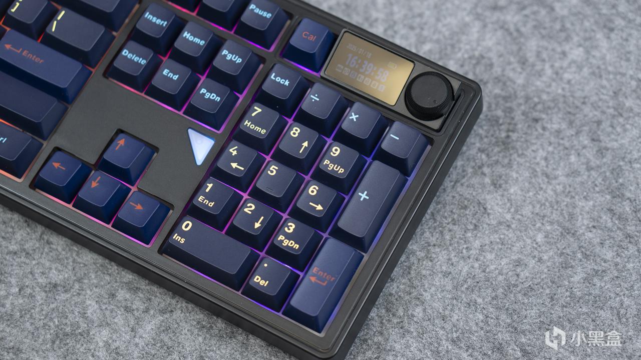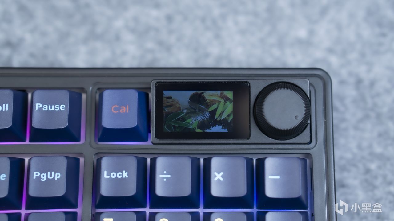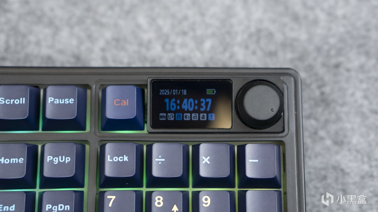 而最有意思的是,它鍵盤燈的指示集成在了右上的TFT小屏幕之中,方便我們更直觀地觀看。在小屏幕的左邊有一個計算器按鍵、右側有一個音量調節旋鈕。如果您熱衷於心無旁騖的錄入,這樣的鍵位分佈,也更爲實用。