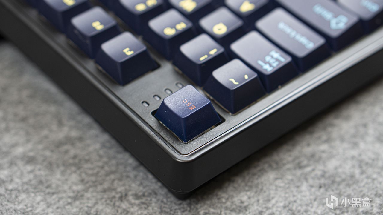 鍵盤的鍵帽爲PBT材質,細細的磨砂表面、貼合手指的設計,且材質本身不容易打油的特質,也讓它有了更長的使用壽命及穩定的手感。
