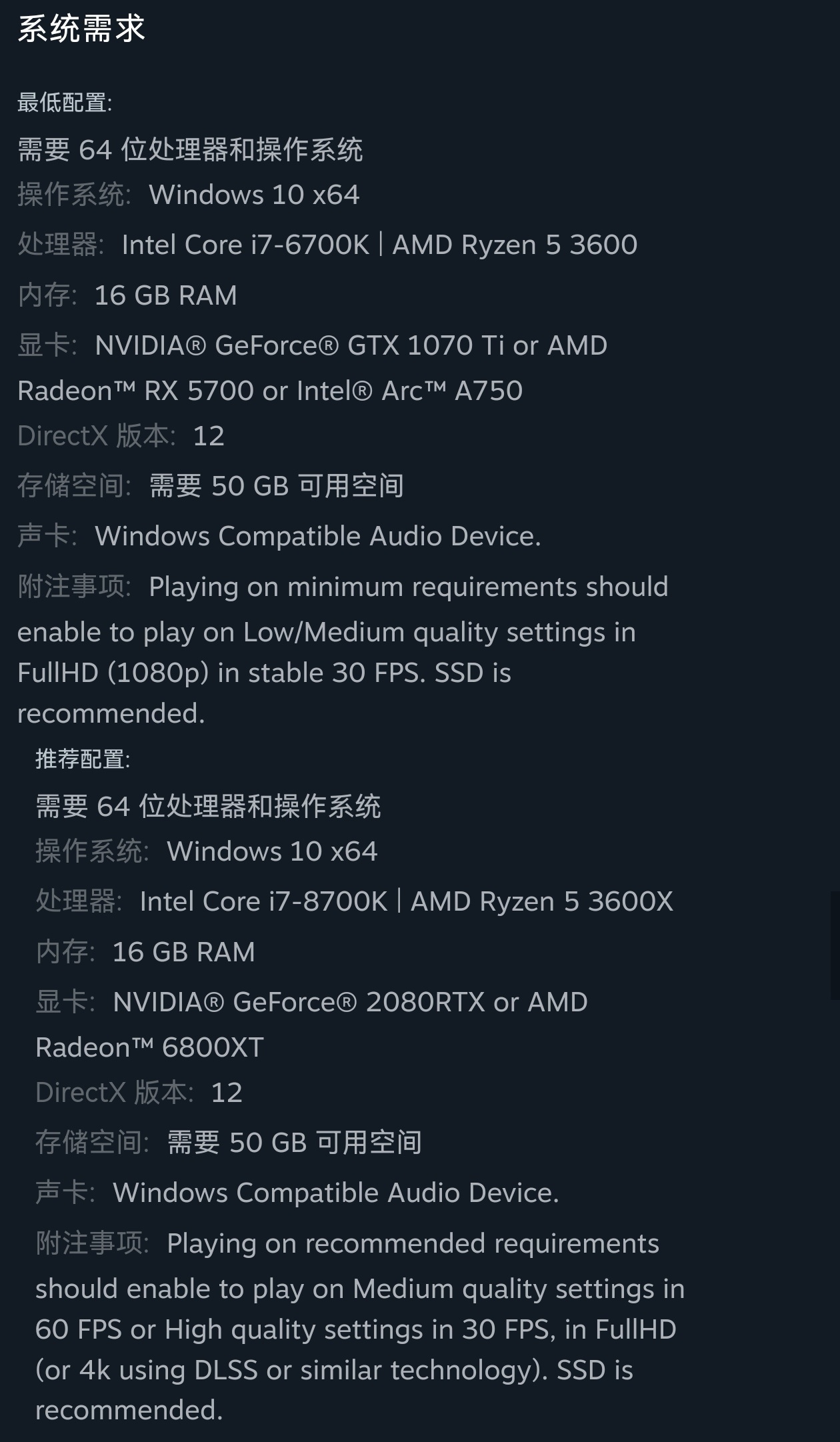 游戏配置要求: