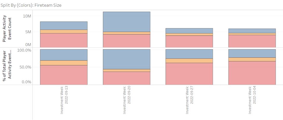 铁旗的周常参与量平均比试炼高出3倍,在过去的48月里,试炼只有18次达到20%以上的日常参与量,与铁旗达到20%以下的日常参与量的天数一致。事实上,在同样的时间区间,铁旗的最差表现数据与试炼的最好表现数据几乎相同