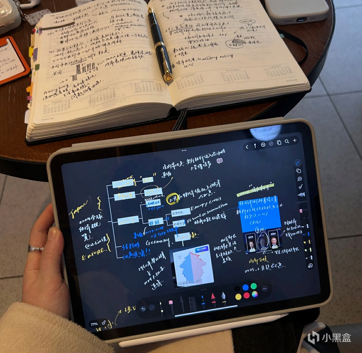 功能:鋼筆/畫筆/圓珠筆(手寫筆記)、熒光筆(highlight重點)、文字框(打字)、形狀工具/貼紙素材(記筆記)