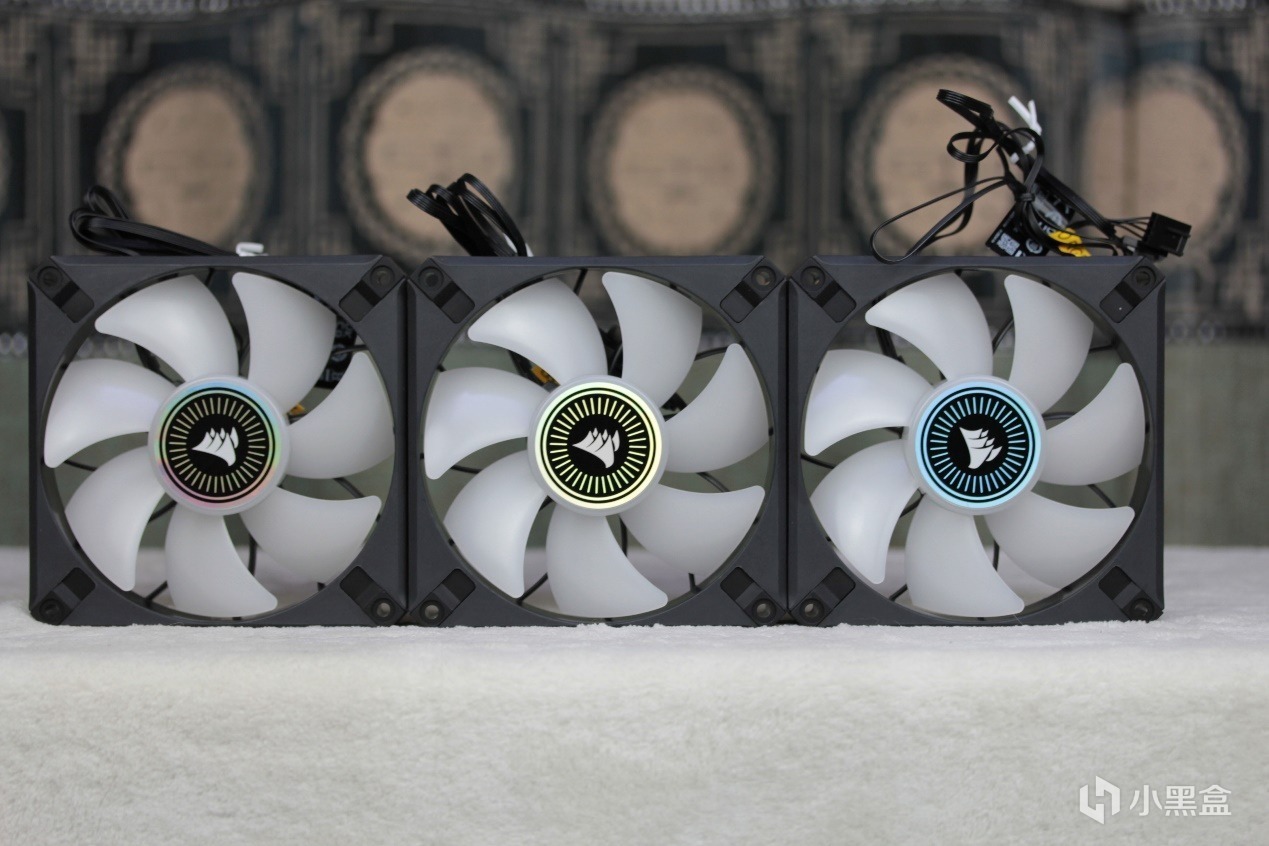 iCUE H150i Elite LCD版自带3个12厘米ML RGB ELITE磁悬浮轴承风扇,具备静音、寿命长的特性,搭配AirGuide技术来让气流更加集中。每个风扇都装有8颗RGB LED灯珠,风扇转速范围为480~2400RPM,最大风量为75CFM。