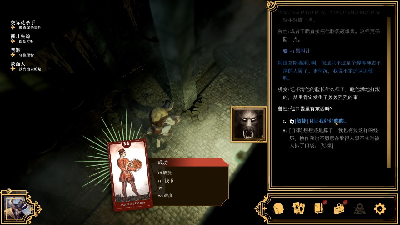 技能、塔罗牌和命运的几率系统,不再是简单的数字堆砌。每一次技能的使用,都意味着你会变得更强;每一次塔罗牌的抽取,都可能改变未来。选择如何行动:用冷静的头脑谈判、运用魔法,还是直接用炸药解决问题?这座城市的规则是——做自己,当然,也要承担后果。塔罗牌给你一个机会,但不保证每一次都会幸运