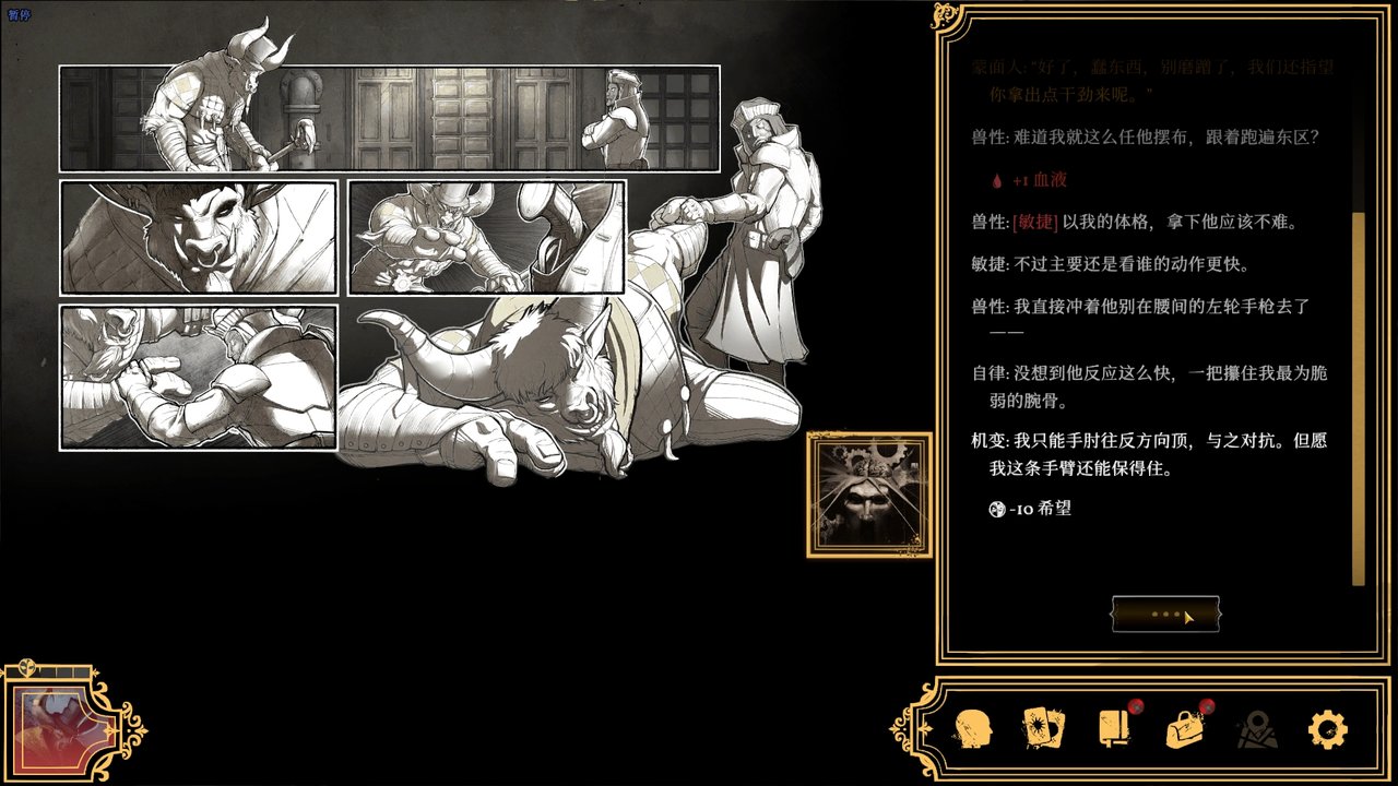 不过前段时间有一款游戏突然上线了steam,他的名字叫【主权辛迪加雾都疑案】,在他上线之前,我甚至还不知道有这样一款游戏,但在上线之后,他非常独特的质感直接让我想到了极乐迪斯科,而且在我进行游玩的时间里发现了很多相关的地方,有些游戏设计的地方明显是有极乐迪斯科的影子。游戏现在的售价也并不算太高,感兴趣的朋友可以试试。