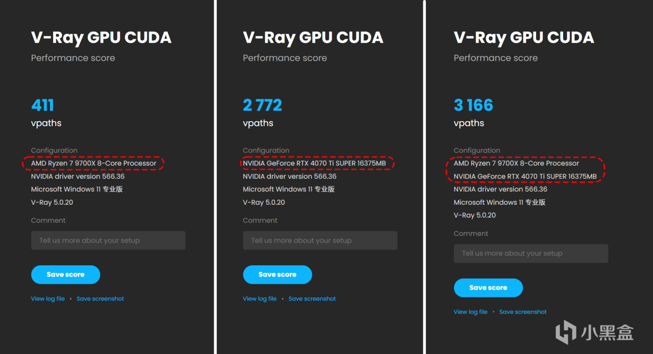 ▼V-Ray是一个GPU渲染引擎盘,可以CPU和GPU之间切换,使用V-Ray 5 Benchmark进行测试 (最新版本是V-Ray 6), RTX 4070TiS(GPU)取得的成绩是使用9700X(CPU)的6~7倍,虽然没有Blender的差距那么大,但也是非常明显了。