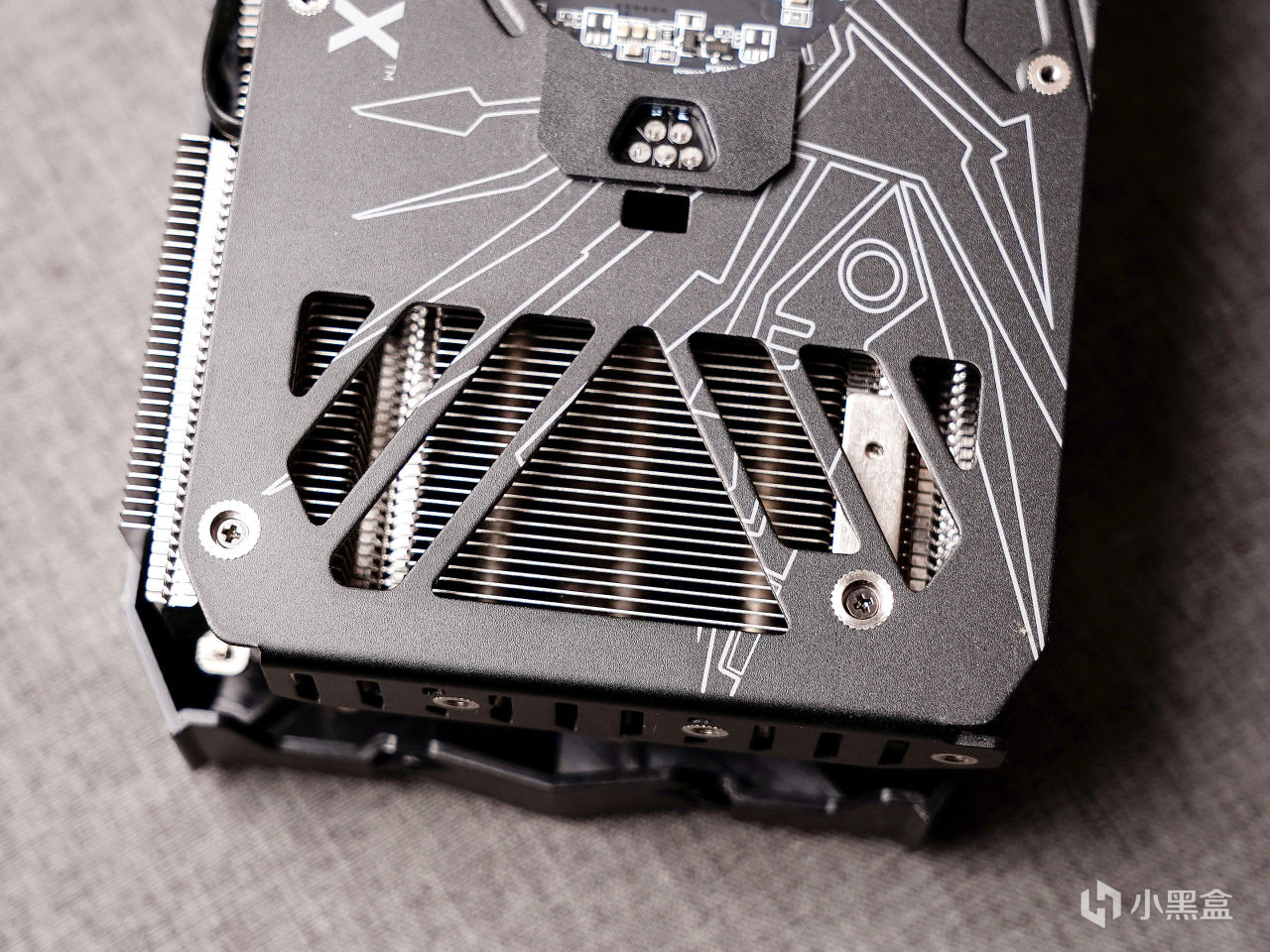 ▼背板前端的PCB上还有一部分镂空设计,形成了贯穿式风道,有利于空气穿透鳍片,提升散热效能。