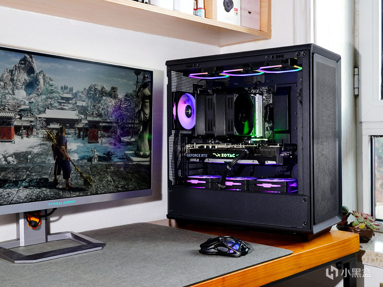 ▼风扇为3个9cm直径的仿生盾鳞2.0风扇,叶片经过特别优化,并具有低负载停转功能。中间风扇罩外圈其实是ARGB灯环,上面覆盖了磨砂灯罩,使得灯光看起来会更柔和一些。网友们把这种设计戏称为“煤气灶”(官方名称是“启世之环”)。
