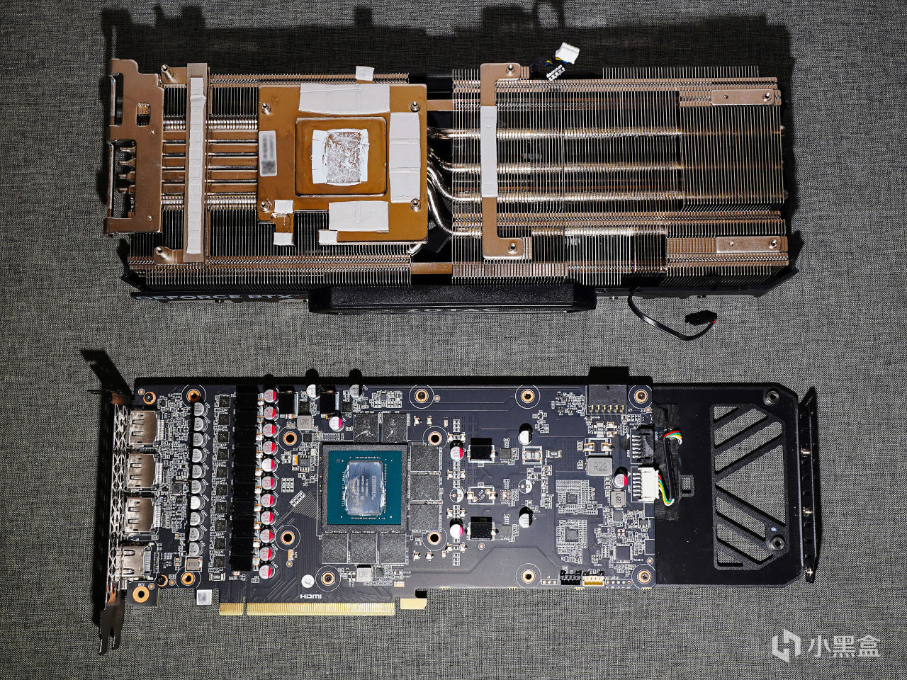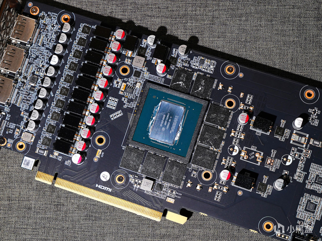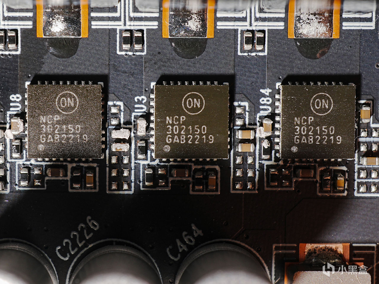 ▼12相核心供电的DrMos用的是安森美NCP302150,平均电流可达50A。对于一张TGP为320W的显卡来说,这样的供电规模冗余已经很大了。