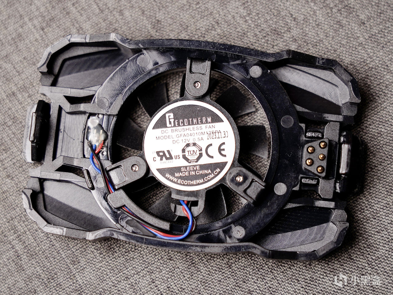 ▼背面装上2个小风扇,其中一个负责吸风,一个负责吹风,形成了立体全方位的5风扇散热体系。当然“天启之翼“存在更大的意义还在于炫酷的ARGB效果。