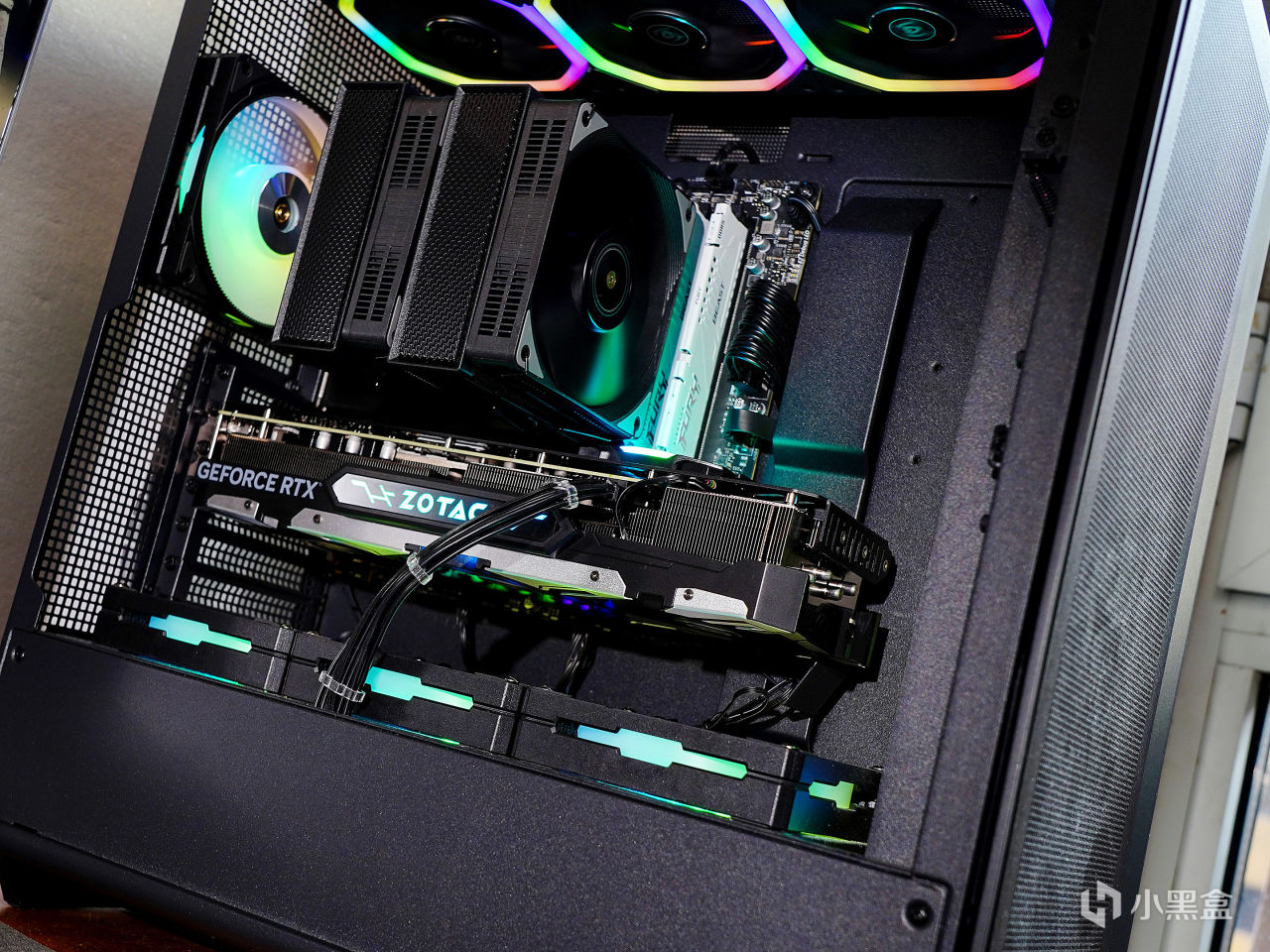 ▼天启之翼的RGB灯环,流光溢彩,这个位置也是常规装机方式最显眼的位置,只是核心部位安装天启之翼风扇后会和风冷散热器冲突,所以就没有安装(也容易和过大的M.2 SSD散热器发生冲突)。