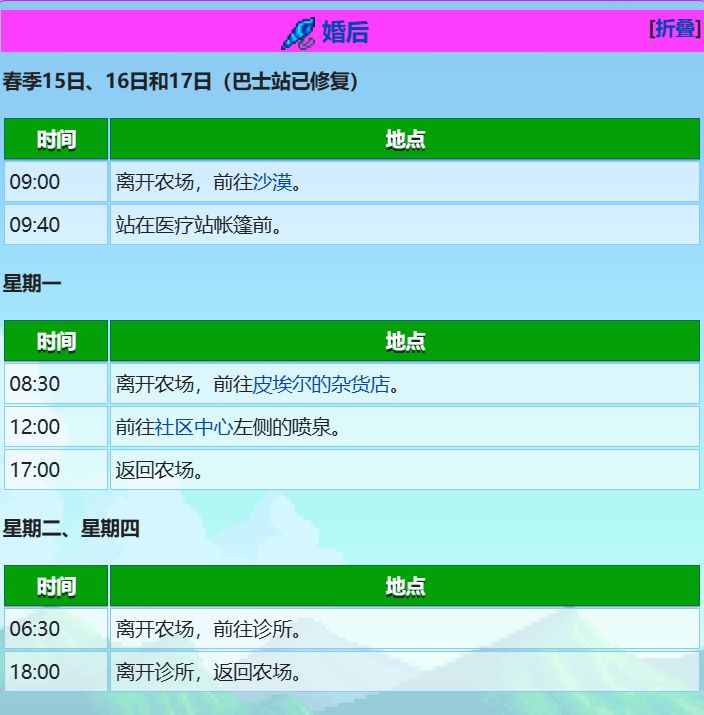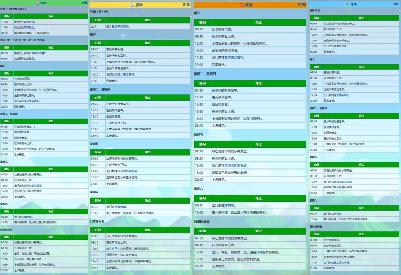 日程的优先级按照从上到下的顺序依次递减,例如春16日满足“哈维参加沙漠节”和“星期二”两个条件,哈维会根据优先级参加沙漠节。