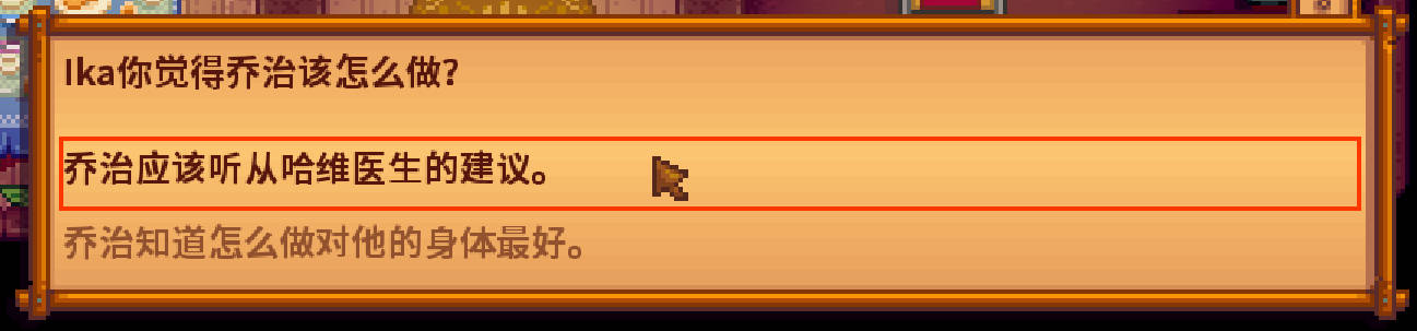 选择“乔治应该听从哈维医生的建议”+40好感度