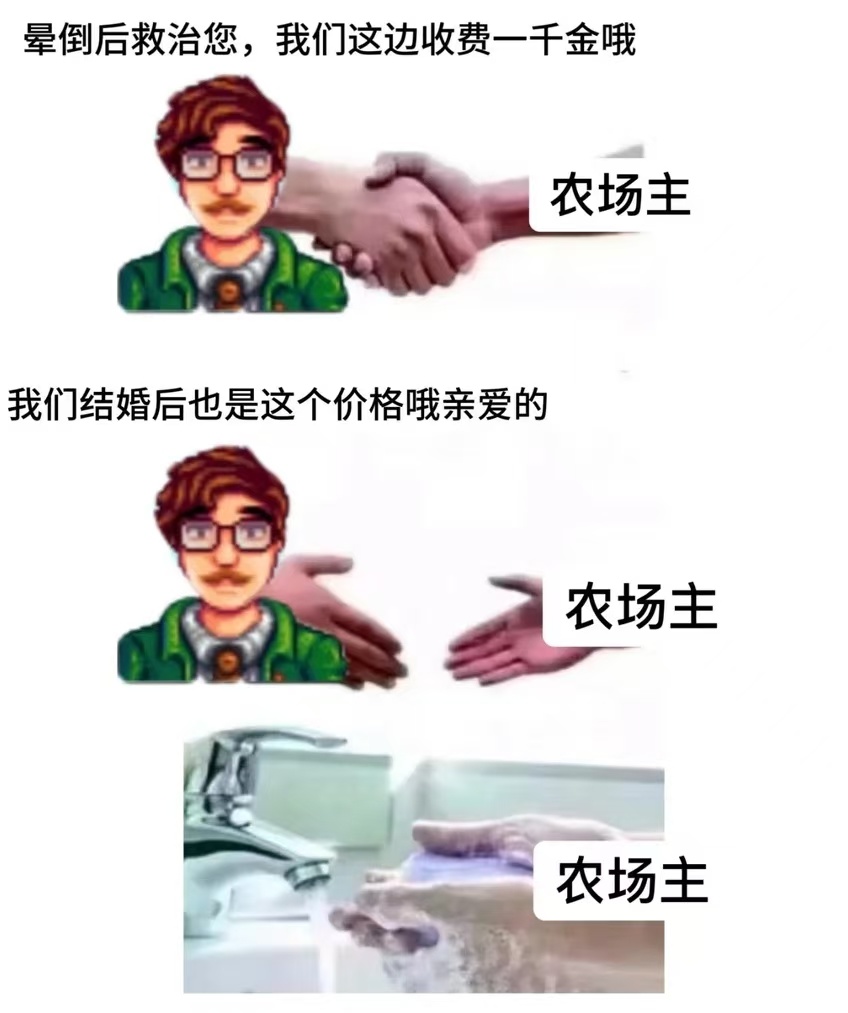 标题玩梗致歉本人没有任何把星露谷当乙游的意思,我都是把所有人娶回家睡大通铺的(bushi)